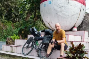 A British cyclist who had been traveling the world by bike died in Bali after losing control of a rented motorbike on a steep road