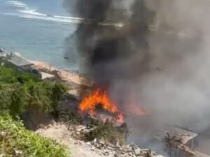 A fire broke out at the former Blue Ocean Hotel on Bingin Beach, Pecatu Village, South Kuta, Badung, Bali, on Monday, August 18, 2025. The