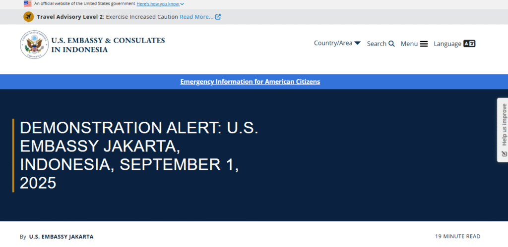 Several foreign embassies have issued updated travel advisories for Indonesia as nationwide protests continue to spread and escalate into violence. The demonstrations, which began on August 25, have increasingly disrupted daily life and prompted concerns for public safety.
